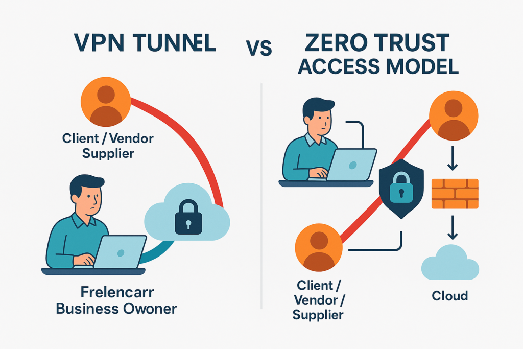 Traditional VPNs typically grant wide network access once authenticated, often far beyond what a contractor reasonably needs. This violates the principle of least privilege — only accessing necessary assets — and increases the attack surface dramatically.